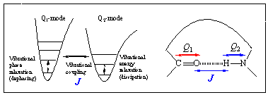 A typical IR absorption spectroscopy provides information on the transition probabilities of each individual vibrational modes, Qj. This one-quantum transition has been called a fundamental transition. Any pair of vibrational degrees of freedom, however, are coupled to each other via mechanical anharmonicity associated with anharmonic potential terms as well as via electric anharmonicity originating from nonlinear coordinate dependencies of electronic dipole and polarizability. In general, these coupling-induced transition probabilities are extremely small in comparison to the fundamental transition probabilities so that it is difficult and sometime impossible to identify these transitions from an infrared absorption spectrum. Noting that the vibrational coupling constants J are highly sensitive to the 3D molecular structure in either gas or condensed phases, one would like to quantitatively measure these vibrational coupling constants revealing critical information on the 3D conformation of the polyatomic molecule. Due to the limitation of those 1D vibrational spectroscopies in quantitatively measuring these small quantities (J values, for example), a natural step toward an achievement of this goal is to use coherent multidimensional vibrational spectroscopy utilizing multiple IR or visible pulses.